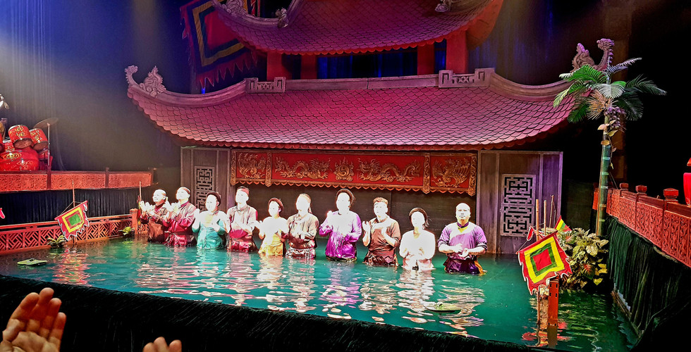 Ein ganz besonderes Event ist das Wasserpuppentheater in Hanoi, am nördlichen Ende des Sees: 57B P. Đinh Tiên Hoàng, Hàng Bạc, Hoàn Kiếm, Hà Nội. Angeblich gibt es diese Kunstform seit dem 11. Jahrhundert nur in Vietnam. Das besondere daran ist das kleine Orchester, dass das Schauspiel musikalisch und live begleitet. Die Puppenspieler stehen in einem Wasserbecken, hinter einem Bambusvorhang und bewegen die bis zu 5 kg schweren Figuren mit Stäben und Schnüren. Die Sitze und Reihenabstände sind zwar für mich etwas zu eng geraten, das Schauspiel mit der untermalten Livemusik dafür ein kultureller Genuss.